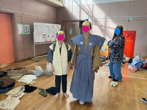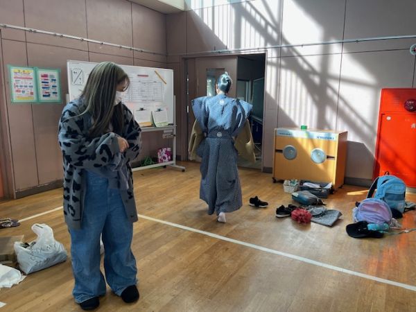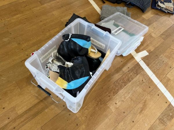 ぜんぶの衣装ケースを体育館の中に運び込み、大き目の衣装を探し出しました。